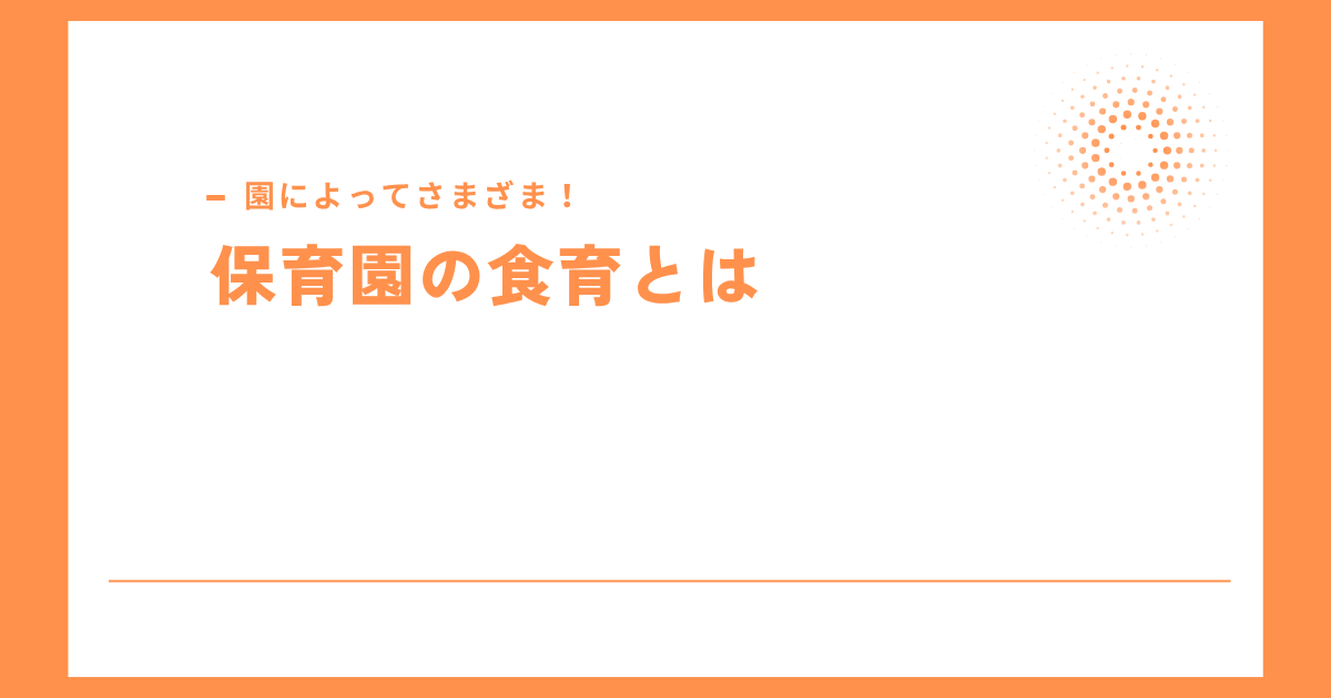 保育園での食育は、園の方針や地域性、子どもの年齢によって様々ですが、「集団で楽しく食べる体験」を重視している園が多いです。